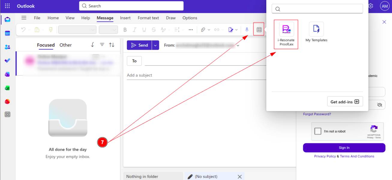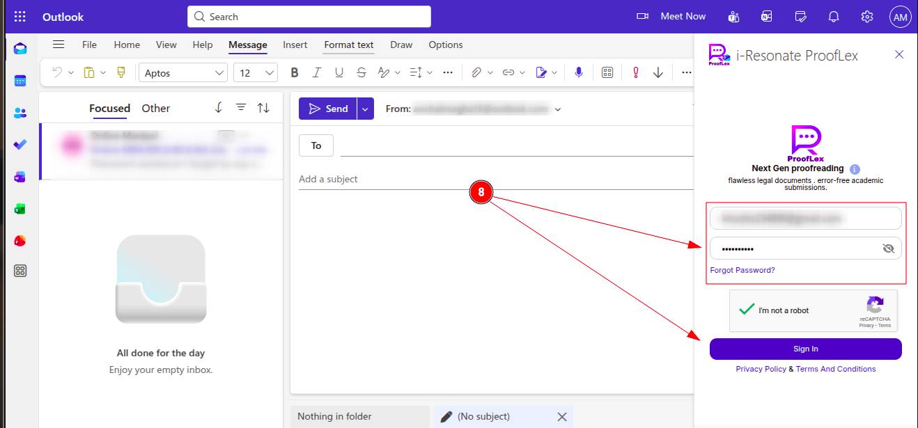 STEP 9; You're all set! Once logged in, the ProofLex panel is ready to use, right inside Outlook.