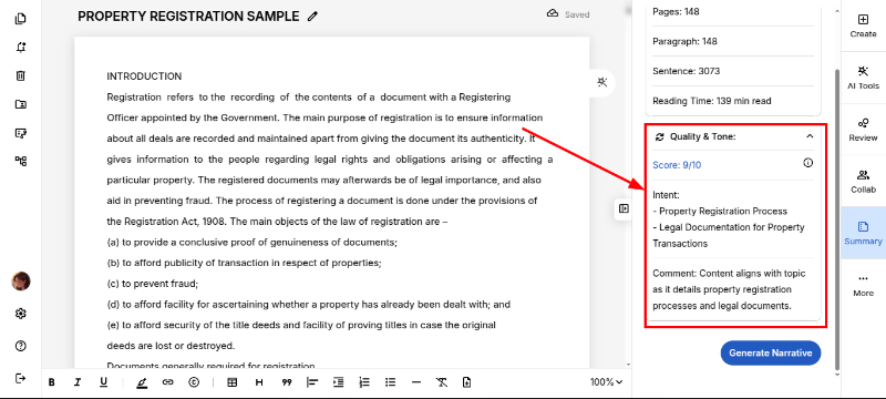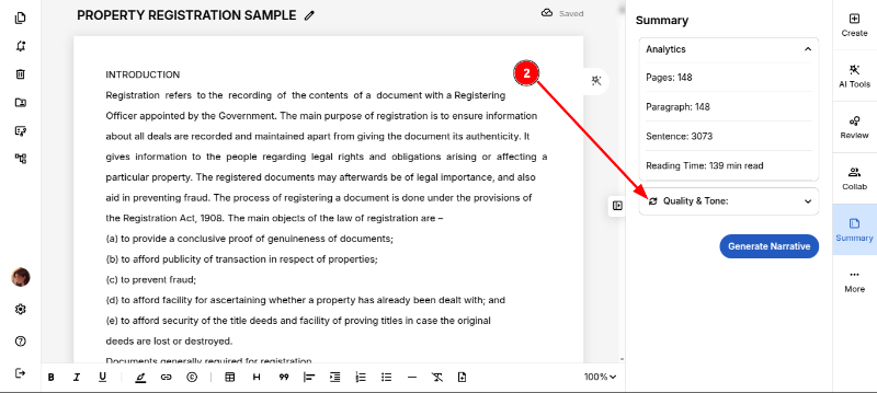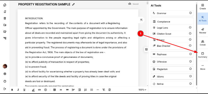 STEP 1: Once your document is imported into the editor, click on “Summary” from the right panel.