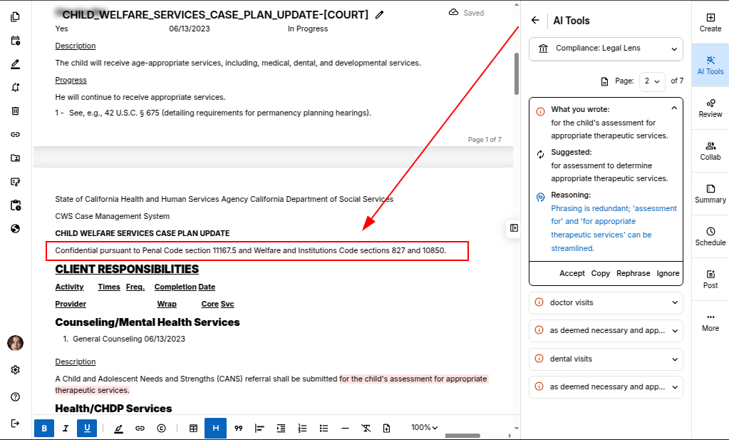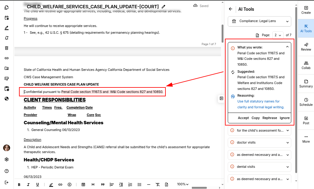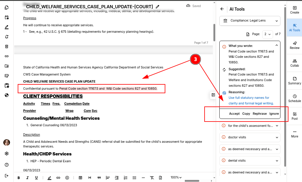 Once you accept a suggestion, legal compliance suggestion is automatically updated in the document.