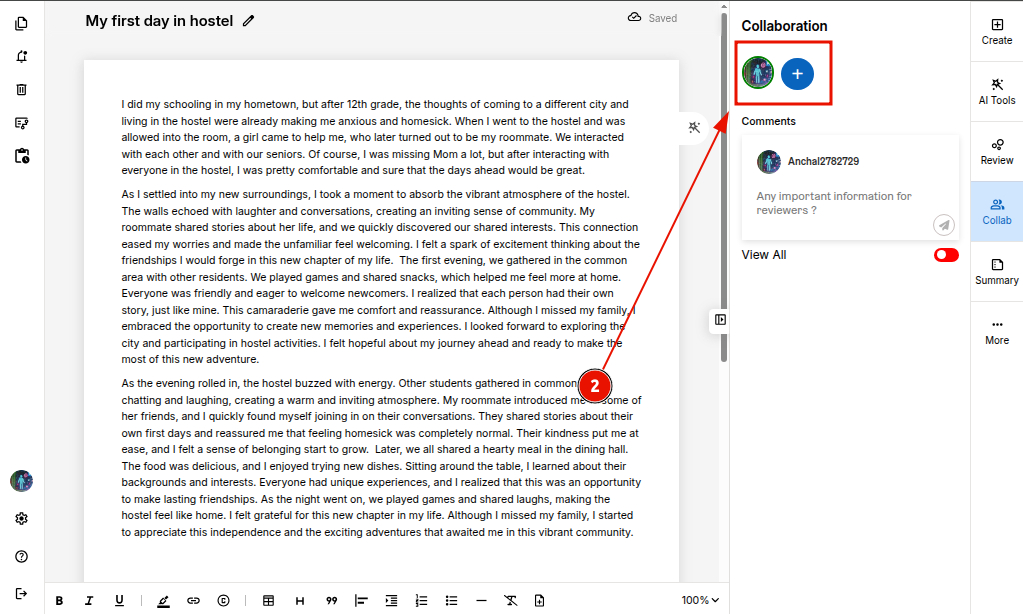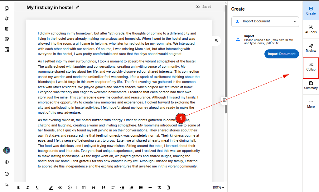 STEP 1. Open your document in the editor and select 'Collab' from the right sidebar.