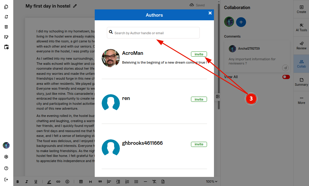 STEP 4. Once the members accept your request, their profiles will appear in the collaboration bar.