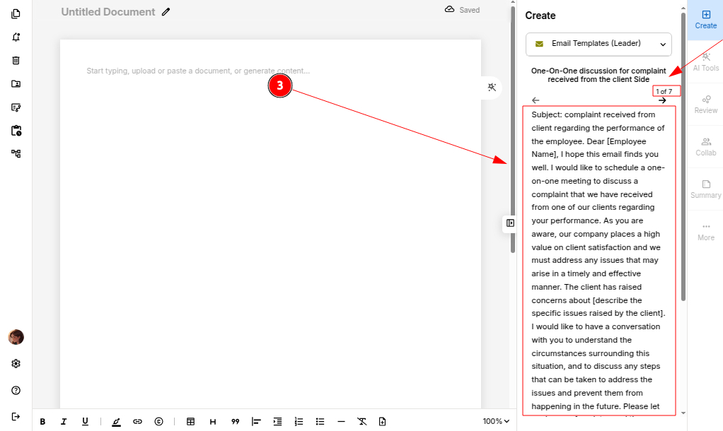 Once your email template is loaded, you can use ProofLex AI tools to refine your email while keeping your message authentic and effective.