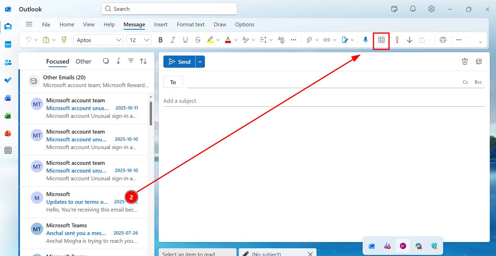 STEP 2: Launch Outlook and open a new email. A compose window will appear.