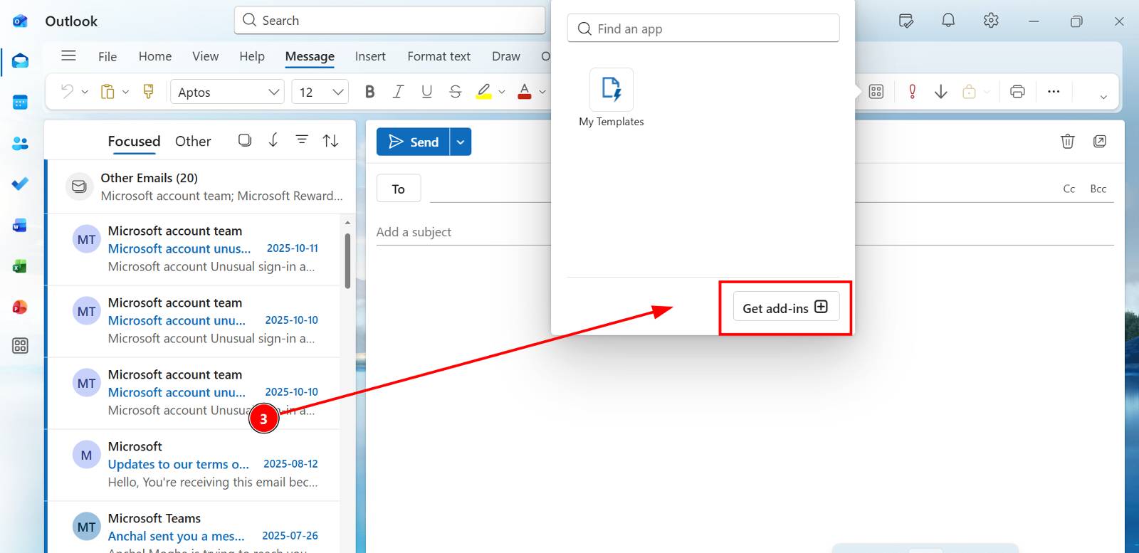 STEP 3: In the Apps section, select “Get Add-ins.”