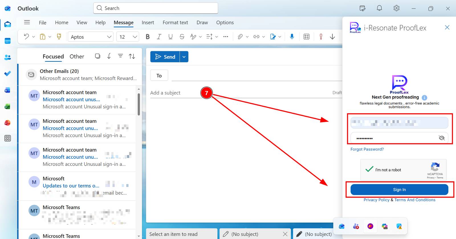 STEP 8: Once logged in, the ProofLex panel is ready to use inside Outlook.