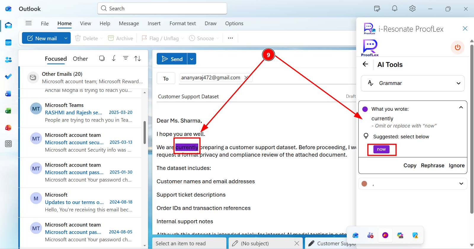 STEP 9: ProofLex scans your email and highlights any words or phrases that may need attention.