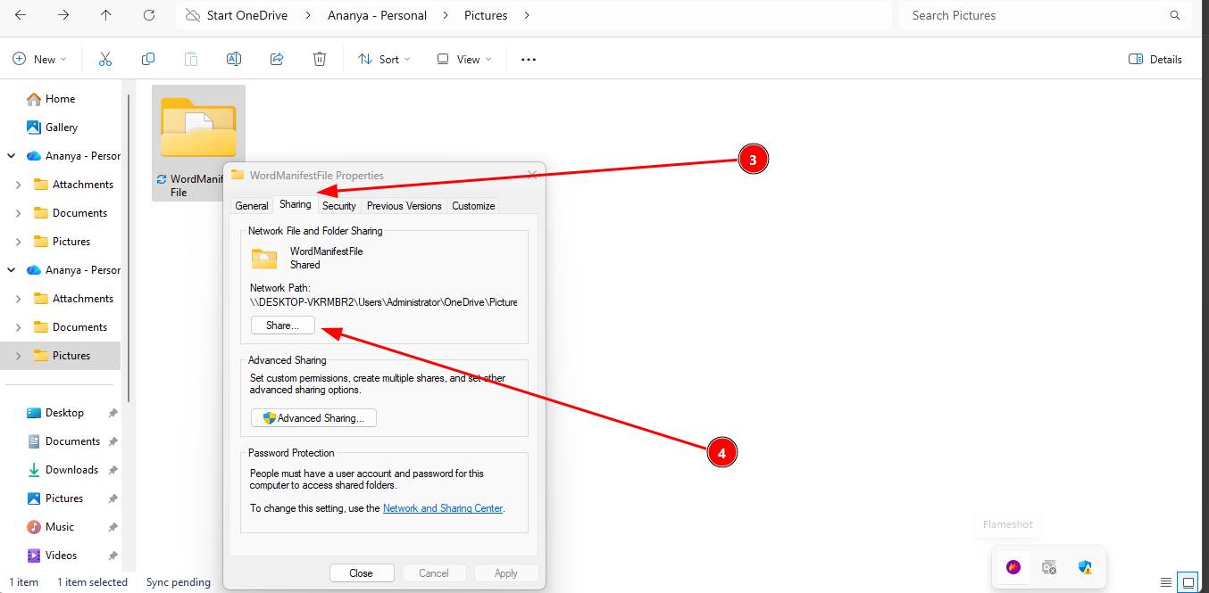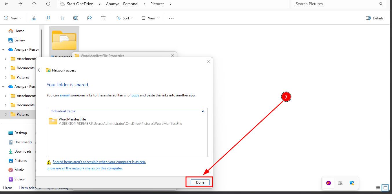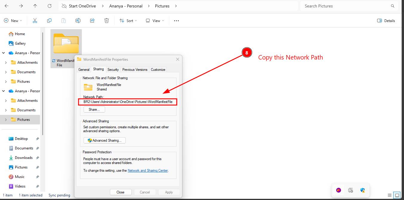 8. Now, Copy and save the Network Path URL shown in the sharing window.