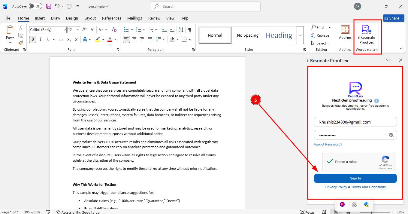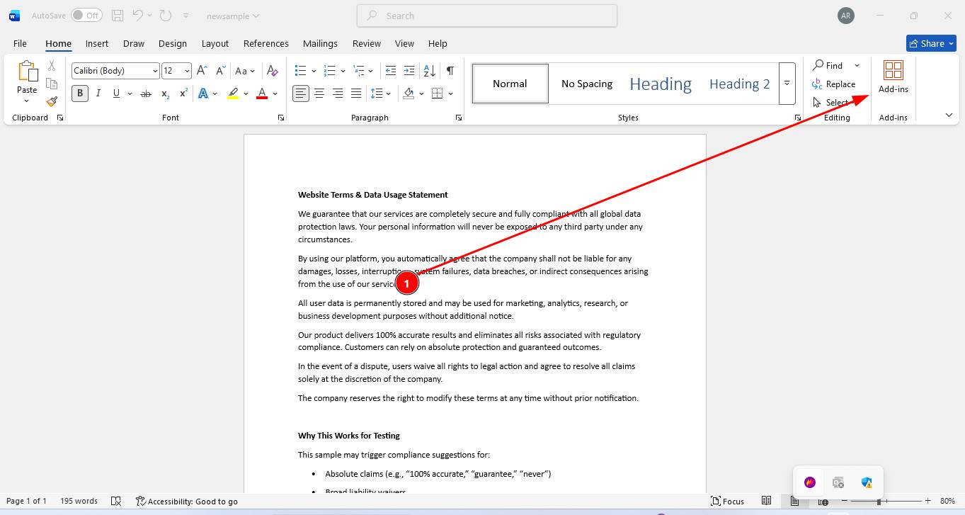 The ProofLex Desktop Plugin for Microsoft Word is an AI-powered add-in that works directly inside the Word application. It allows you to proofread, improve language and run compliance checks without leaving your document.