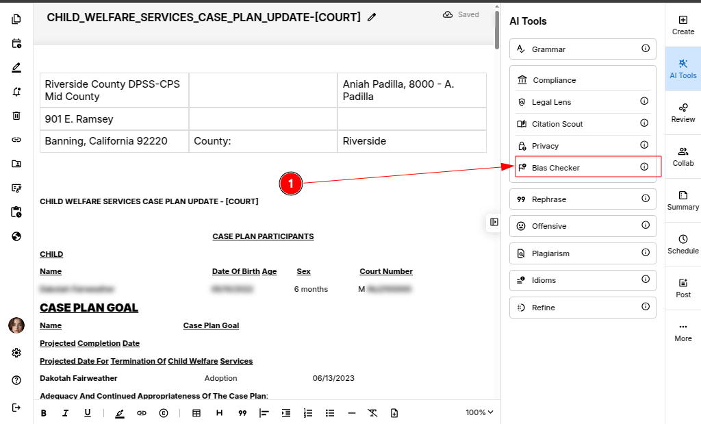 Step 1: Open your document in the Editor and select Bias Checker under the AI Compliance tools.