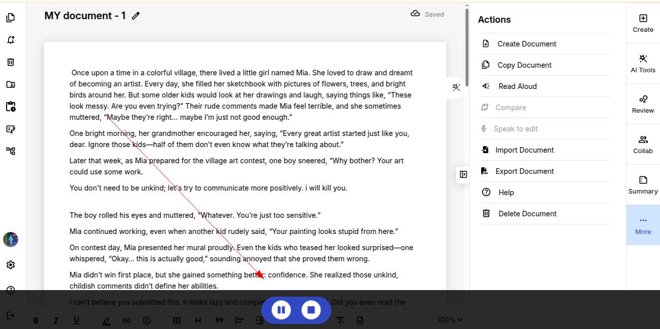 ProofLex will start reading your document instantly. You can pause or stop the reading anytime.