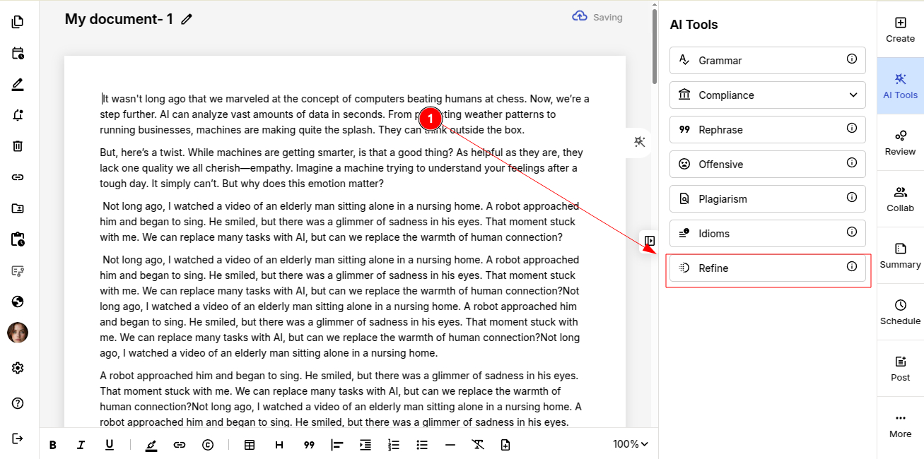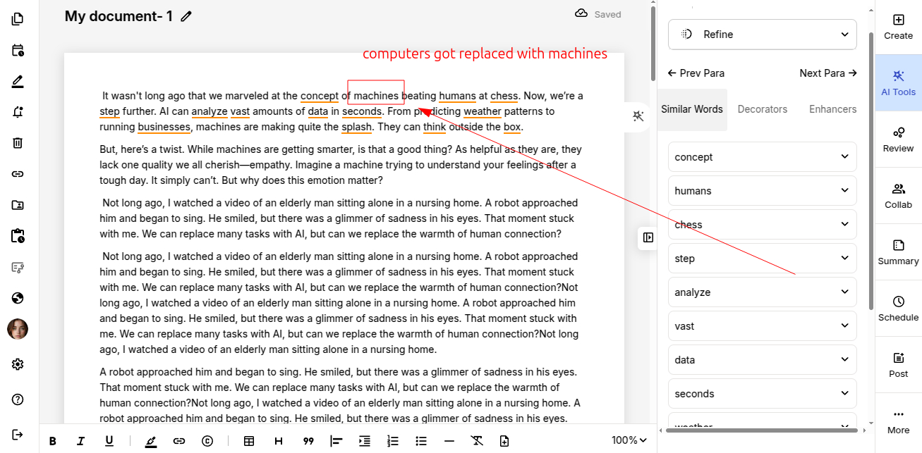 Even when grammar is correct, weak word choices can make content feel flat. Refinement helps elevate the quality of your writing without changing its meaning.
