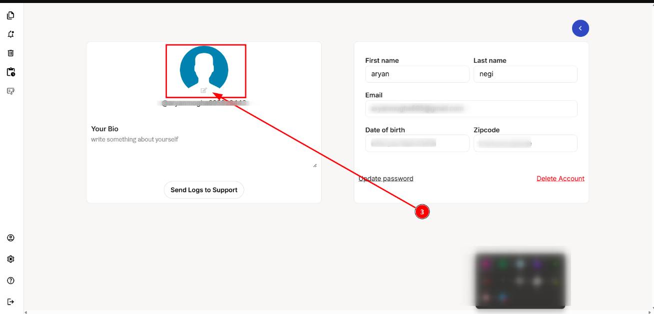 STEP 1.On the left menu bar, locate and click on Profile icon.