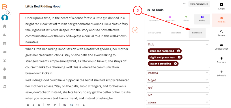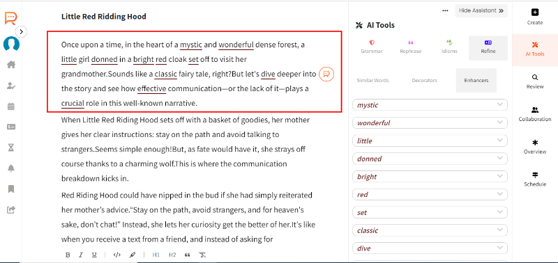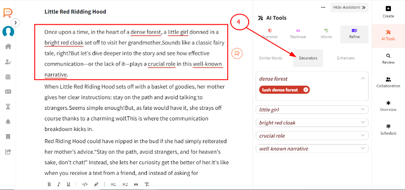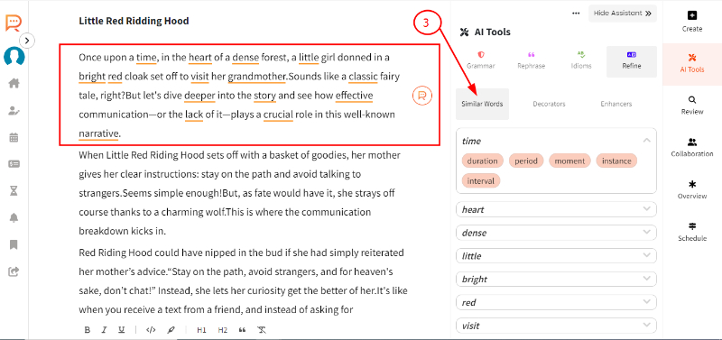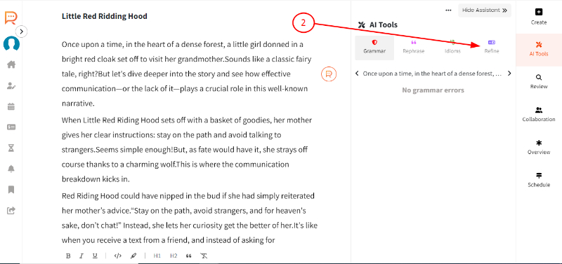 2. Select the paragraph and click on 'Refine'.