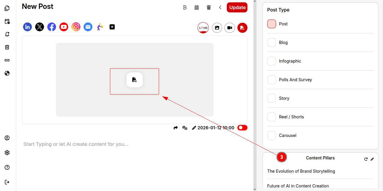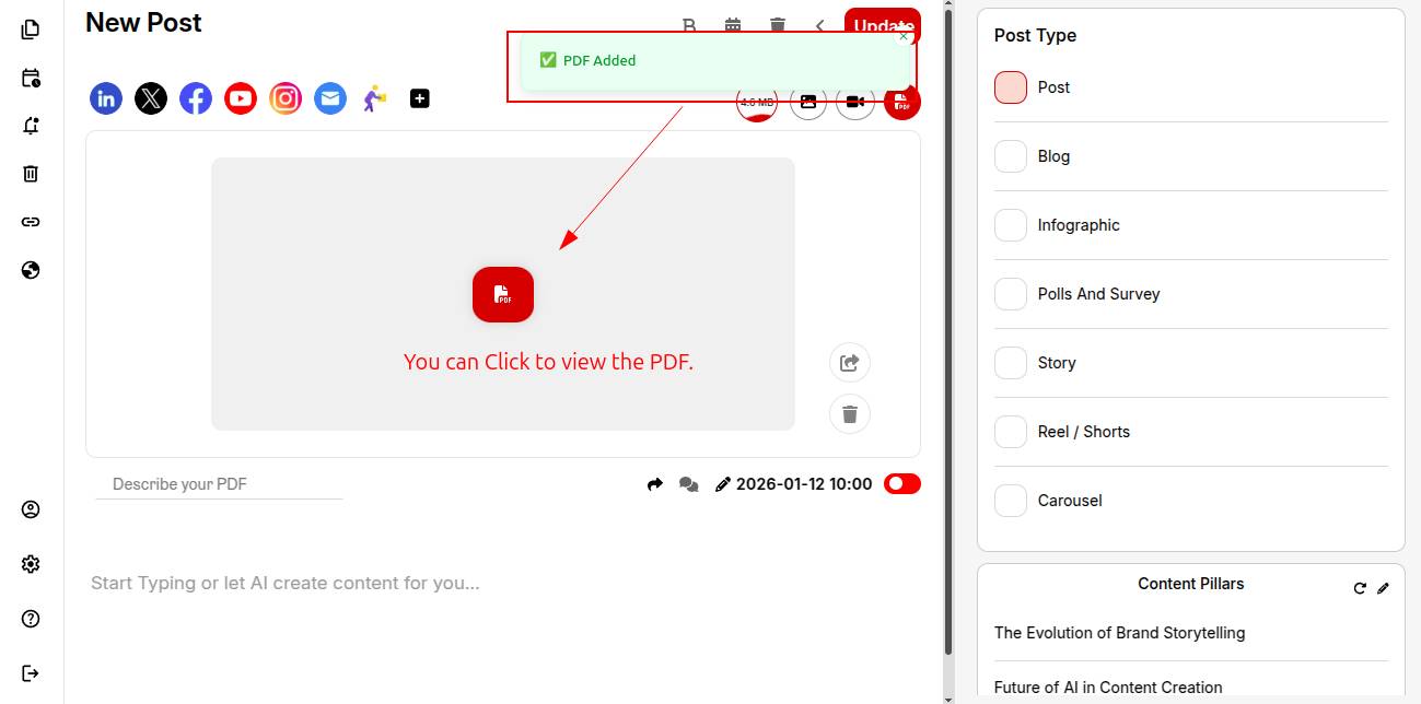 You can then tailor the post context for different social media channels based on your pdf uploaded.