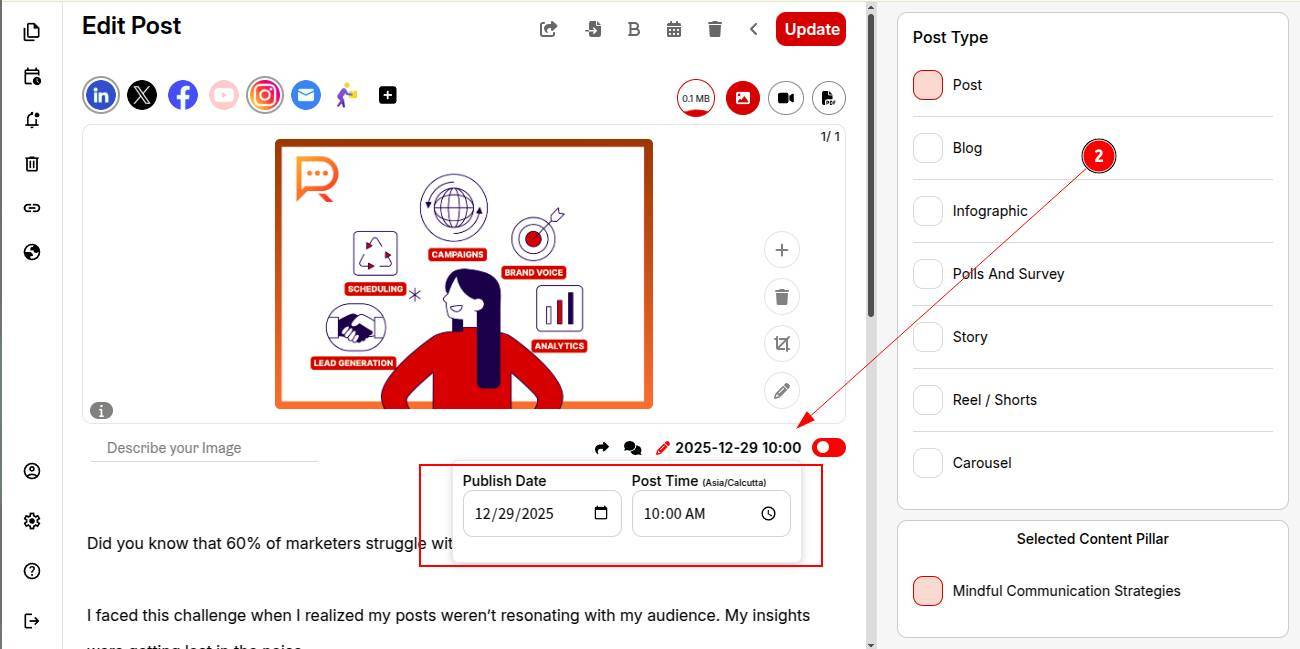 STEP 2: Select your preferred posting date and time based on when your audience is most active.